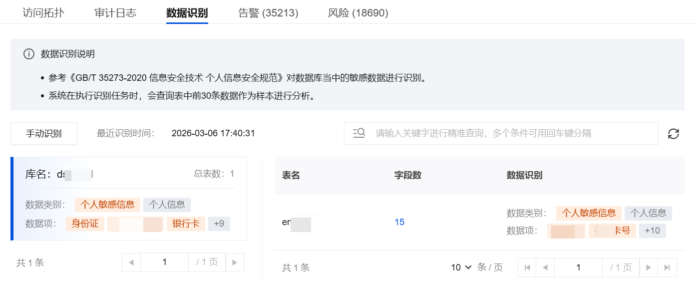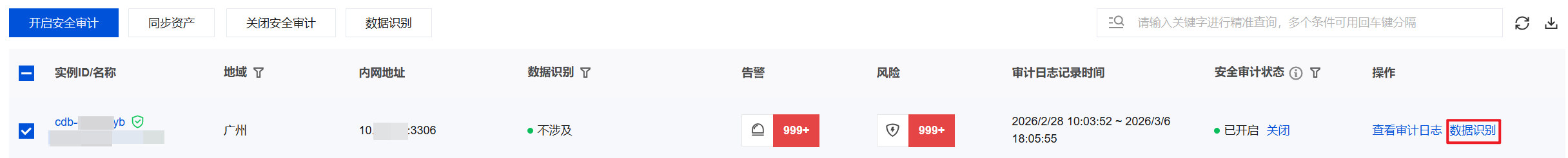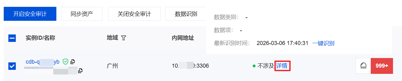 3. 在实例列表下找到已开启数据识别的实例,单击其数据识别字段下的详情。