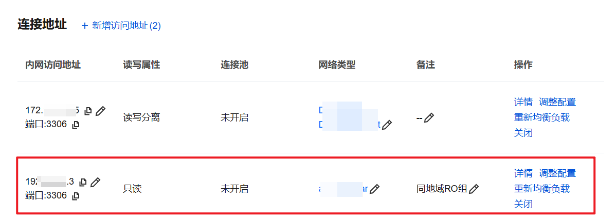 5. 升级完成后,数据库代理页的连接地址下,会自动添加一个纯网络模式的数据库代理内网地址。
