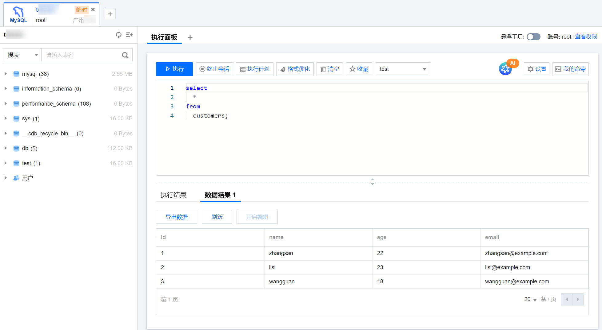 通过 DMC 控制台可以轻松实现数据库、表管理、执行 SQL 操作、数据导入导出等。