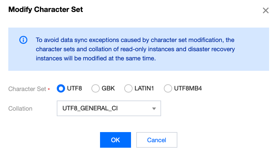 Modifying the character set in the TencentDB for MySQL console