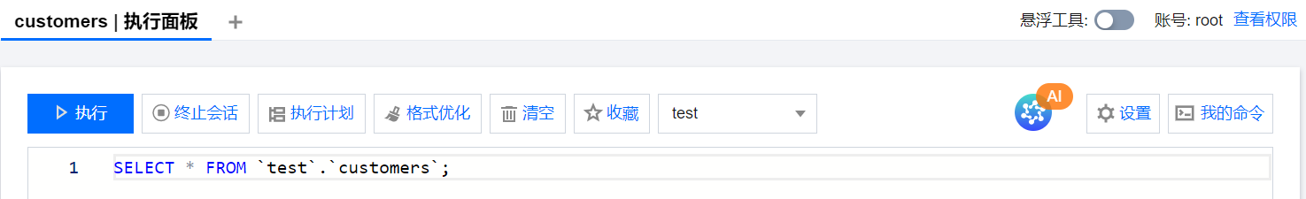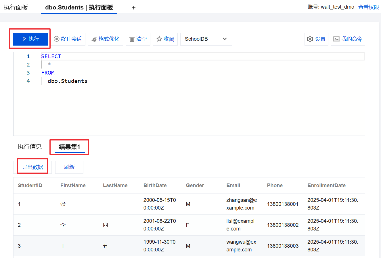 3. 输入 SQL 语句后单击执行,查看执行结果。