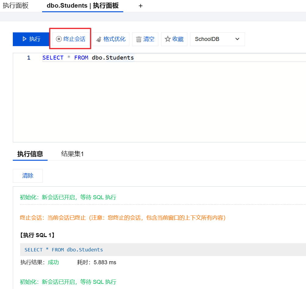 Kill 当前会话并重新初始化:在页面上方单击终止会话。