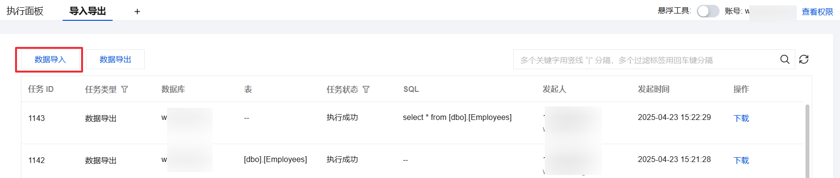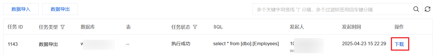 4. 当任务状态变更为执行成功时,在操作列单击下载。