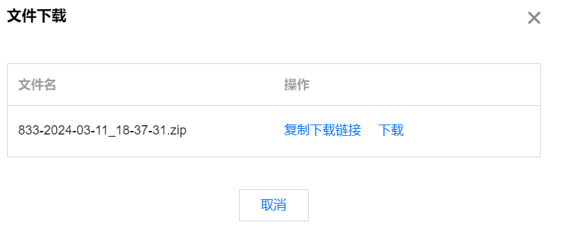 单击复制下载链接,将链接粘贴至新的浏览器页签,即可下载格式为.zip 的文件。