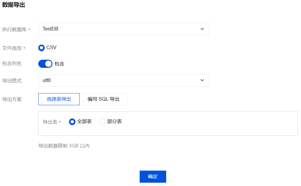 仅支持导出大小小于3GB的 .csv 文件。