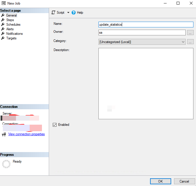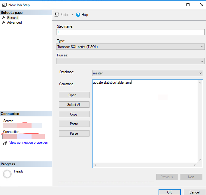 以上截图展示了为某个库中的某张表,创建了一个在每天05:00进行统计信息更新的 Job 的步骤。其中需要更新的表和定期执行的调度时间,可以根据业务自身需求来评估和修改。