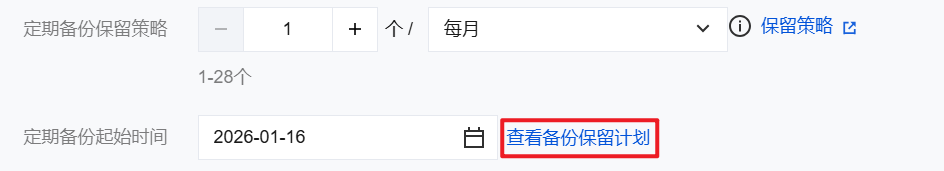 设置完定期备份保留策略以及起始日期后,您可单击定期备份起始时间后的查看备份保留计划对备份计划进行预览。