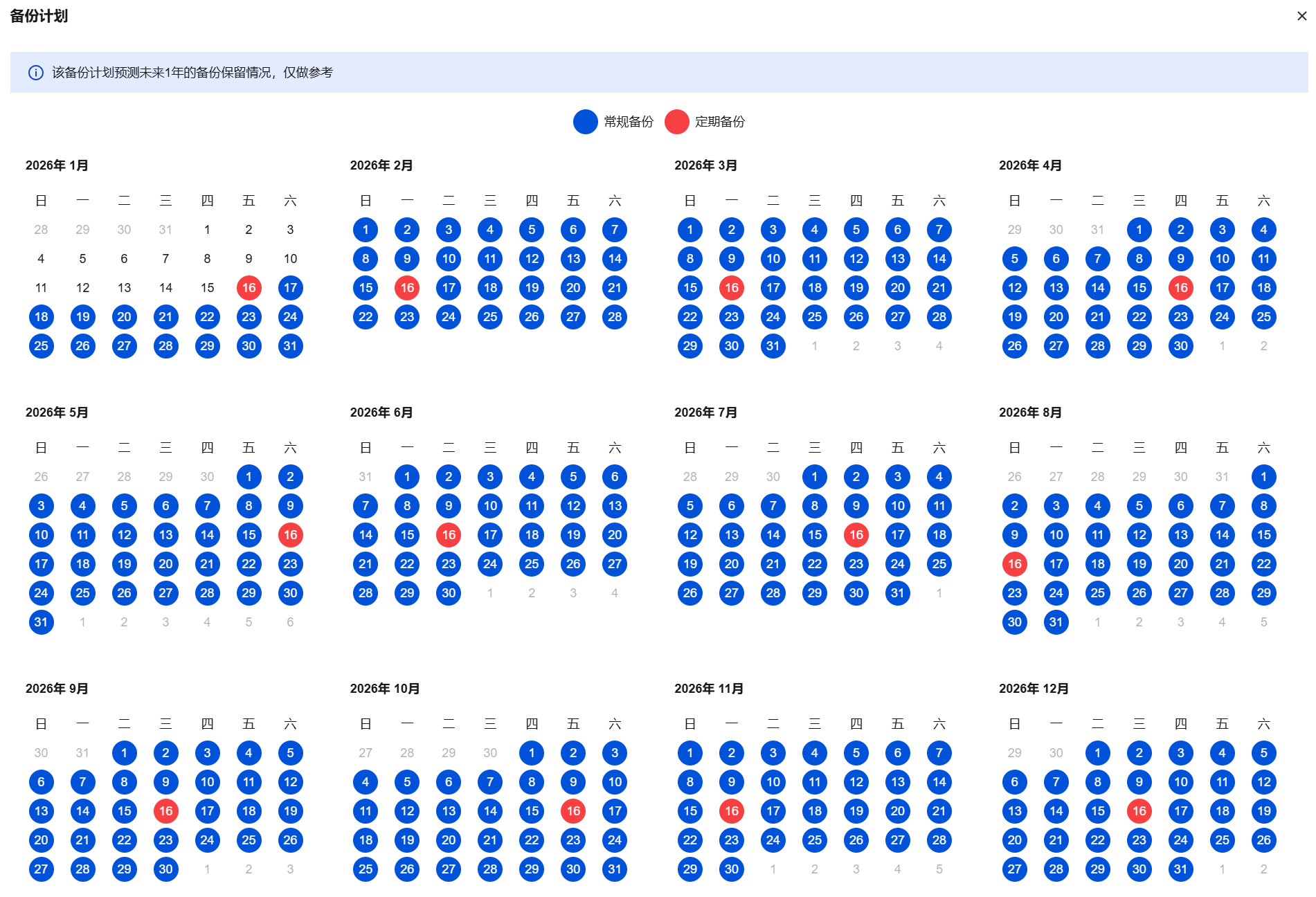 备份计划预览暂时为未来1年的备份保留情况,仅作为参考。