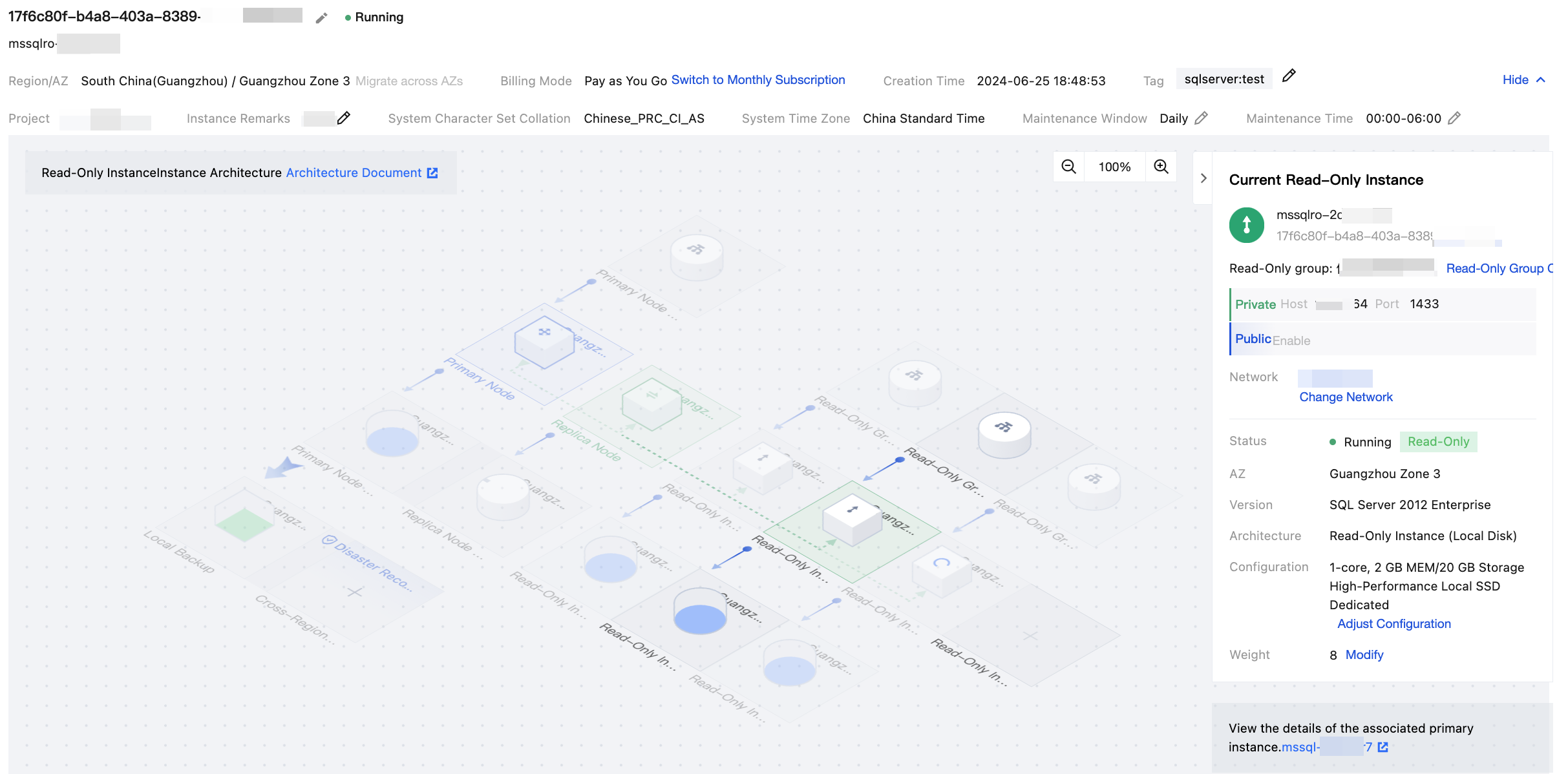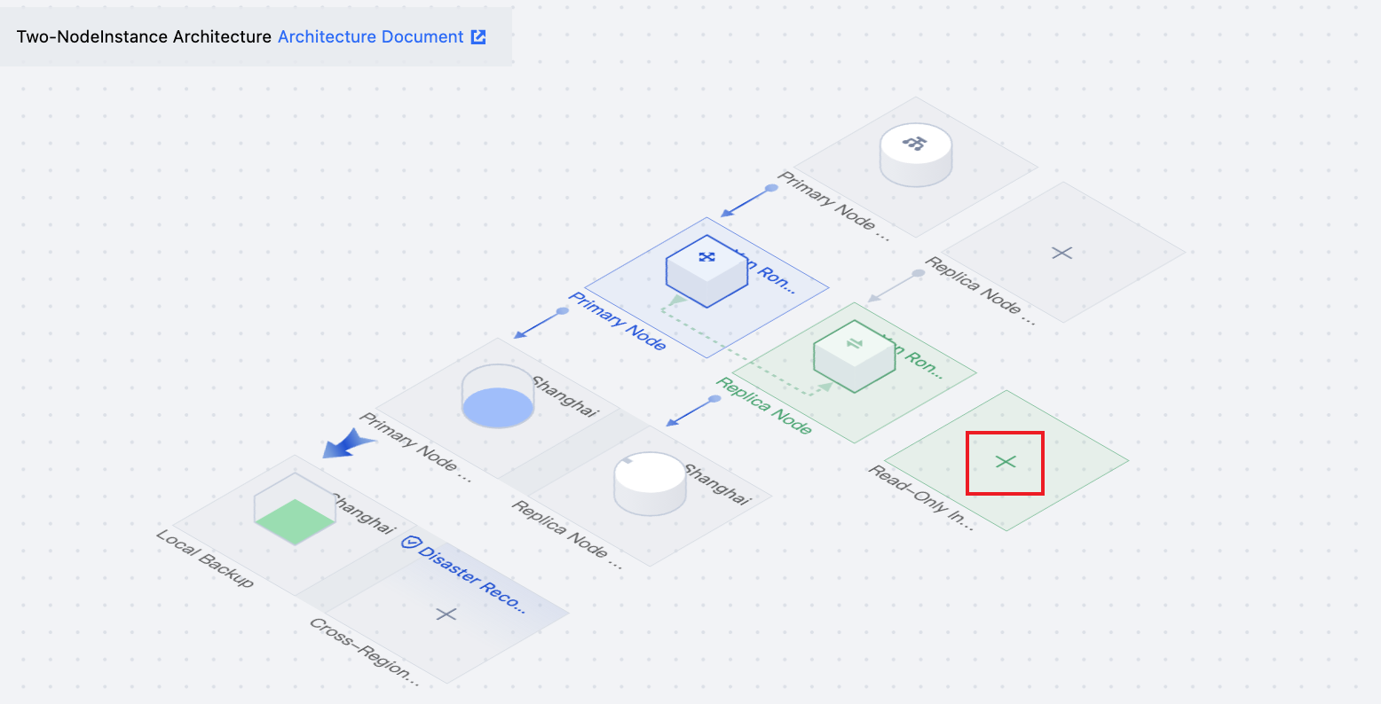 | - | Grayed-out area in the topology diagram | The grayed-out area in the topology diagram represents the deployment architecture of the master instance to which the read-only instance belongs, and the grayed-out area does not support click operations. |