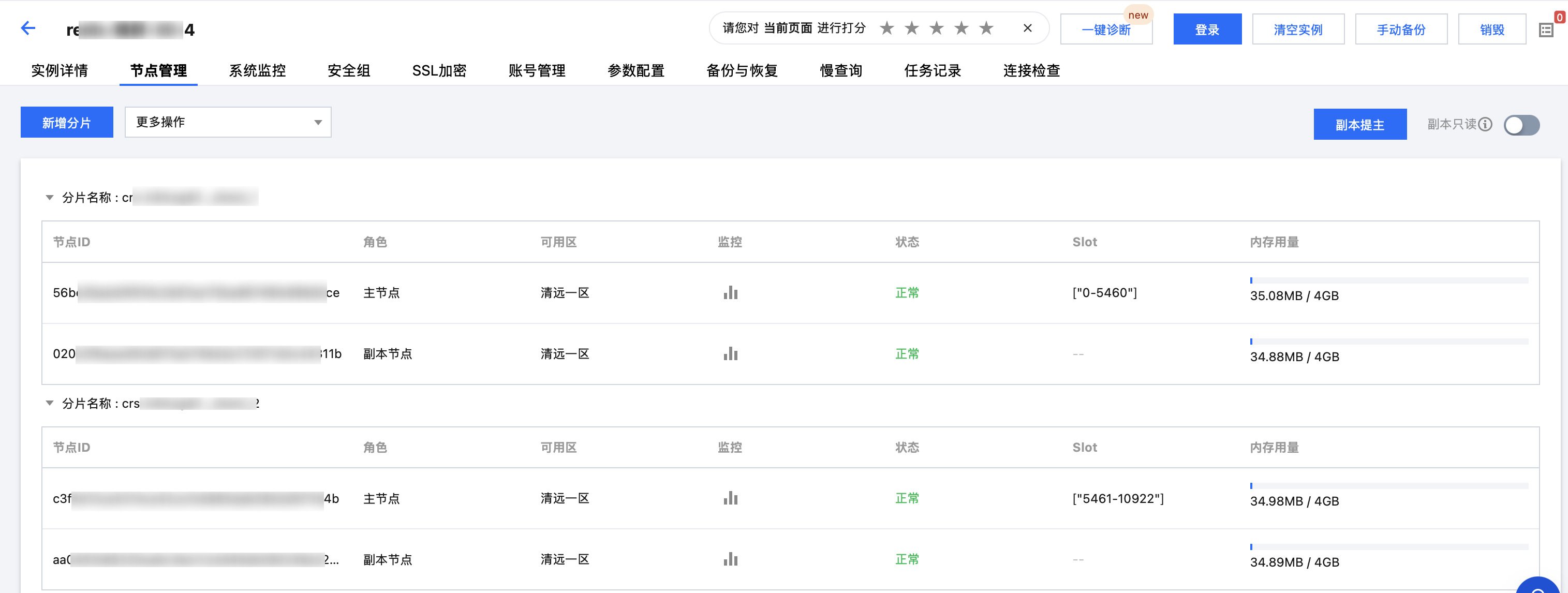 登录 Redis 控制台,单击实例 ID,在节点管理页签,获取节点 ID。