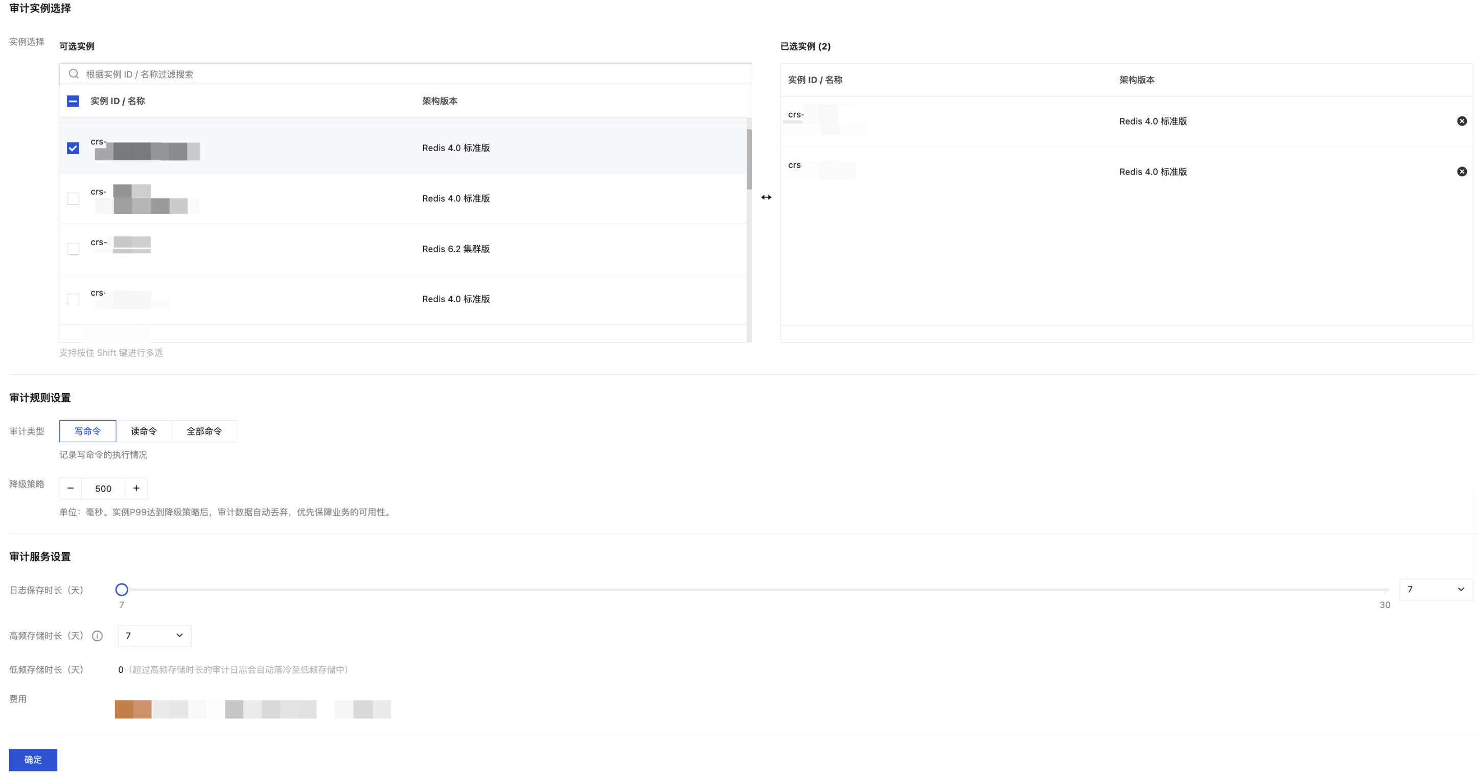 批量为多个实例统一开通审计功能:业务批量上线,可一次性为业务相关的所有实例配置相同的审计策略(如写命令审计、保留7天),确保审计配置的一致性,避免逐个配置的操作失误。