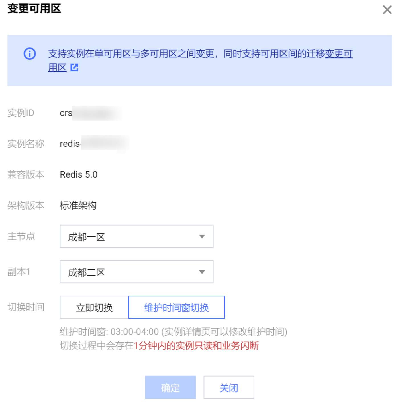 3. 支持可用区迁移功能,即主节点和副本节点可用区同时修改。