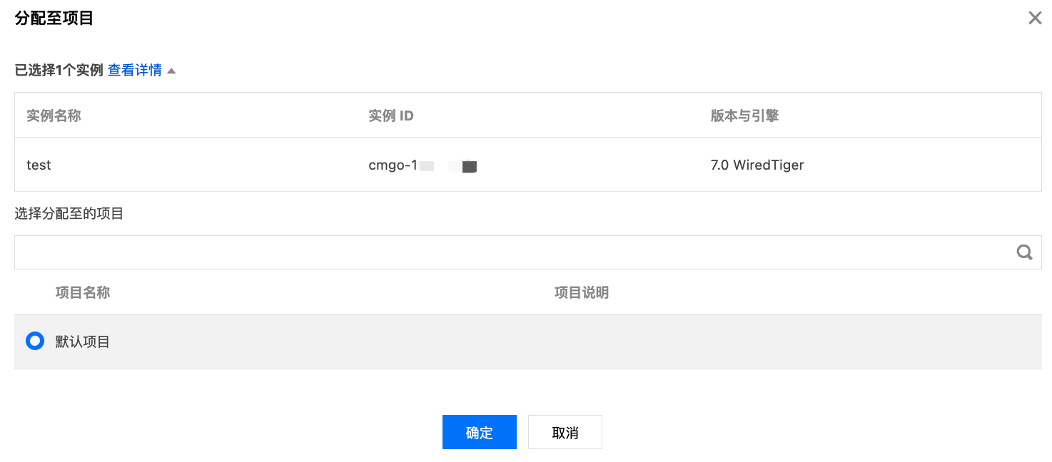 云数据库 MongoDB 支持在控制台给实例重新分配其他新的项目,以适应变化的业务场景。