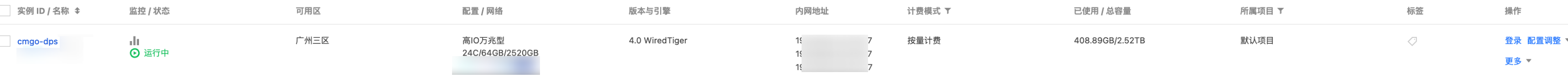 在 MongoDB 控制台 的实例列表,可获取访问数据库的内网地址。