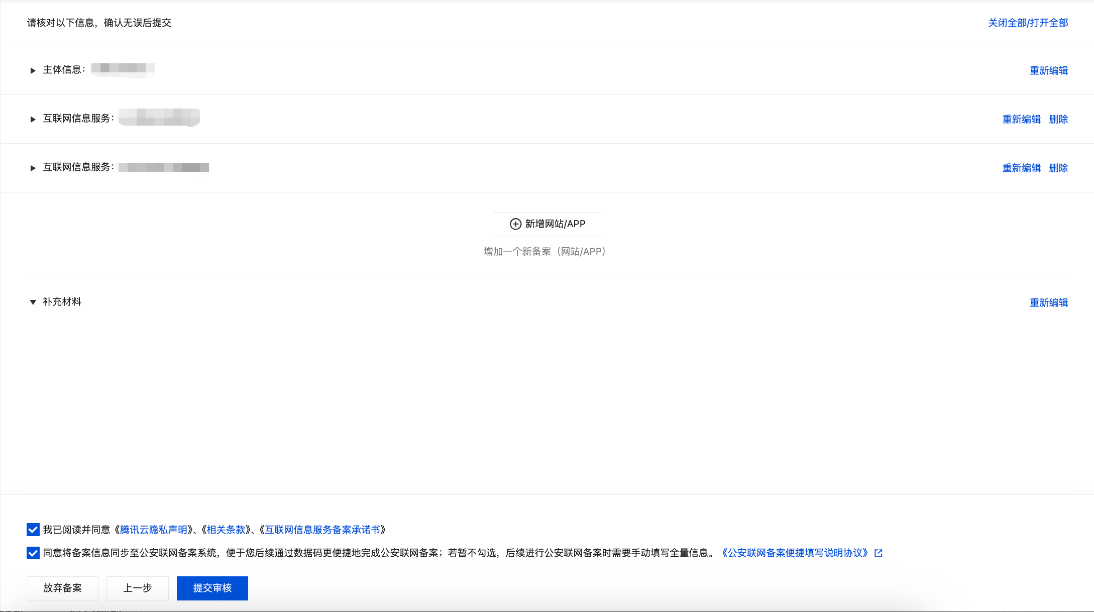 创建主体:新增备案主体信息。