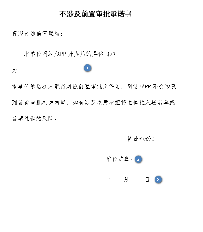 青海省不涉及前置审批承诺书(模板)