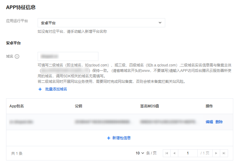 3. 在 APP 特征信息页面,单击包信息中的编辑,并按需填写相关的信息,详情请参见 APP 特征信息填写参考规范,如下图所示: