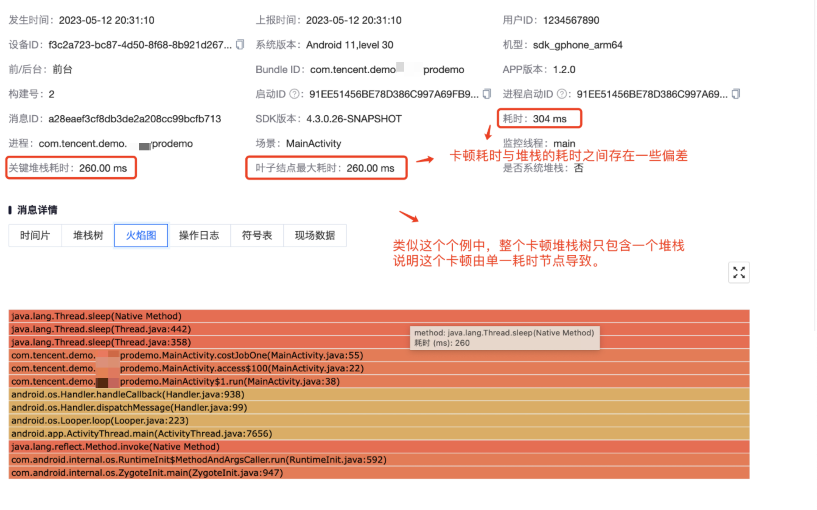 这种估算方式存在误差,误差为抓栈间隔,但是卡顿耗时却是准确的,表示一个 UI 线程的消息执行的耗时。当前卡顿监控通过监控 UI 线程的消息执行耗时来判断应用是否发生了卡顿。