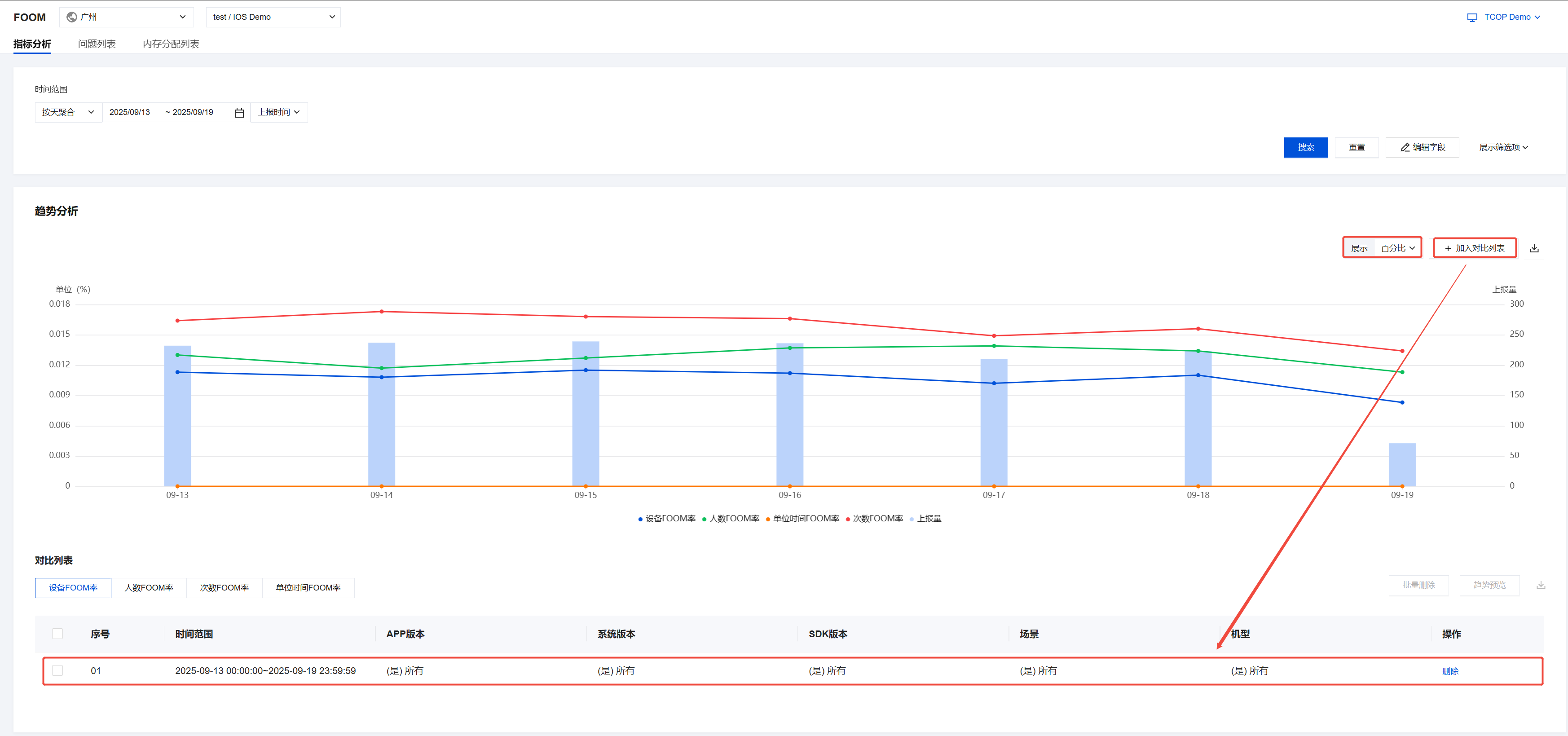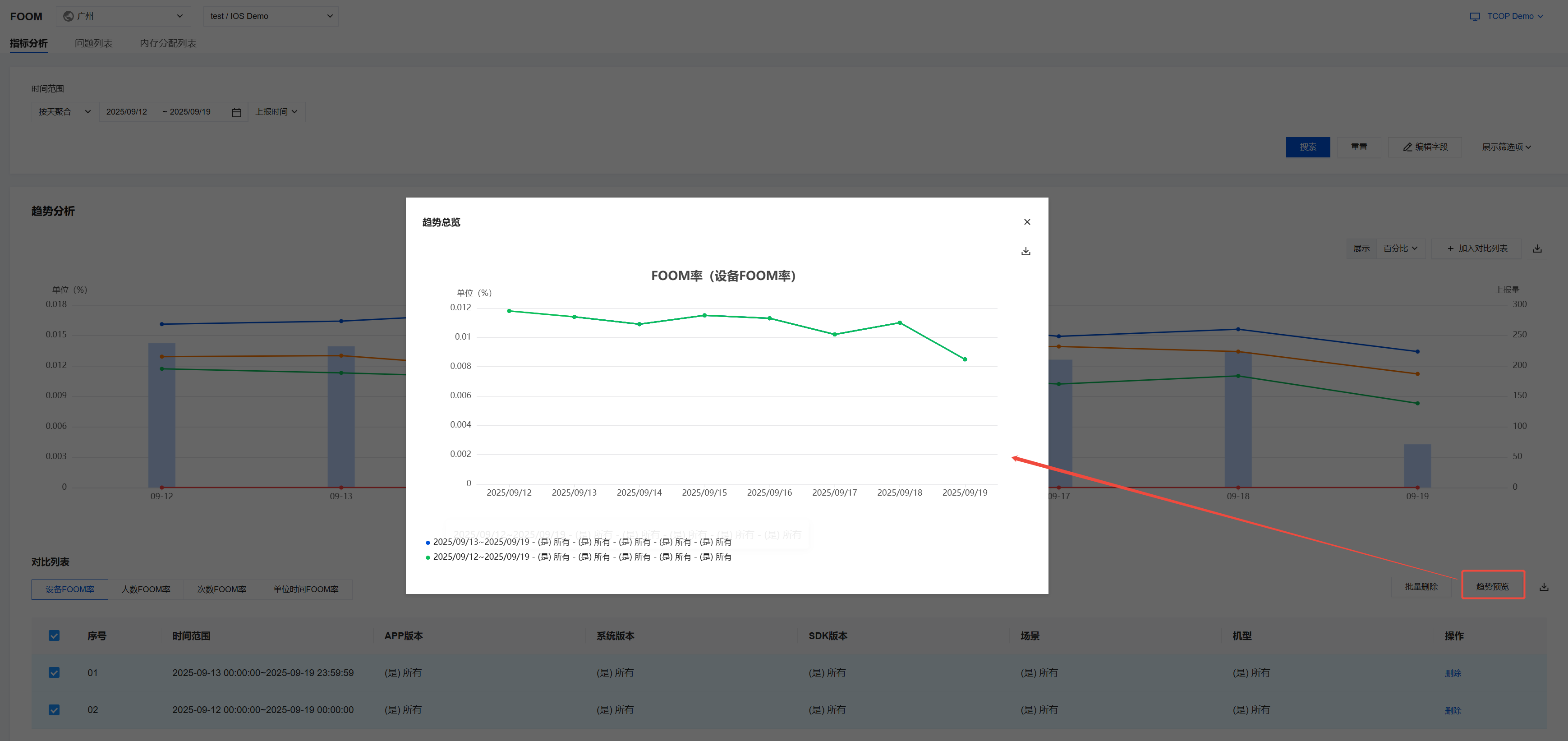 单击趋势预览即可查看对比列表中已选择的 FOOM 率总览。
