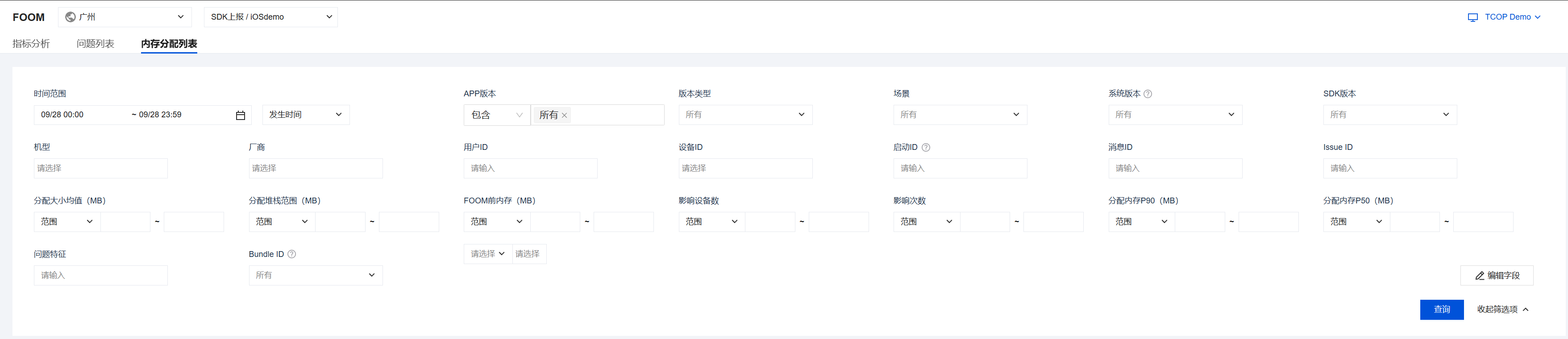 FOOM 内存分配列表功能主要用于查询和管理与内存分配相关的问题,帮助开发者或运维人员快速定位、分析内存分配方面的异常情况,如内存分配过大、影响设备数多等问题,以便及时处理,保障应用的稳定运行。