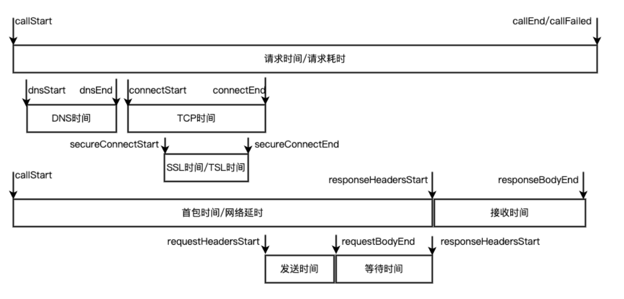 网络监控是通过 OkHttp3的 EventListener 来监控 HTTP 请求的质量,包含请求耗时、成功率、传输数据量,以及请求过程中重要阶段的耗时。