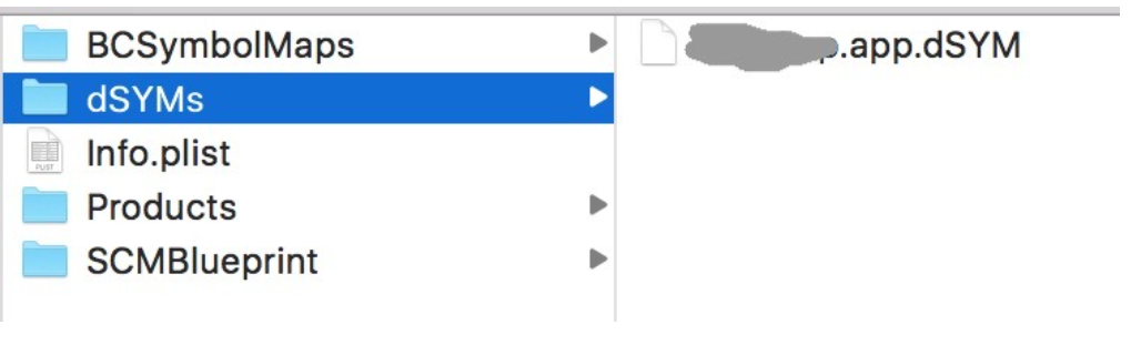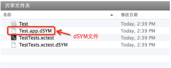 iOS 平台中,dSYM 文件是指具有调试信息的目标文件,文件名通常为:xxx.app.dSYM 。如下图所示: