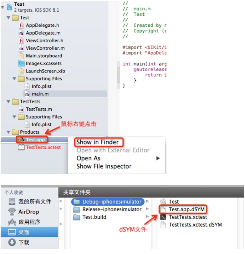 一般情况下,项目编译完 dSYM 文件跟 App 文件在同一个目录下,下面以 Xcode作为 IDE 详细说明定位 dSYM 文件。