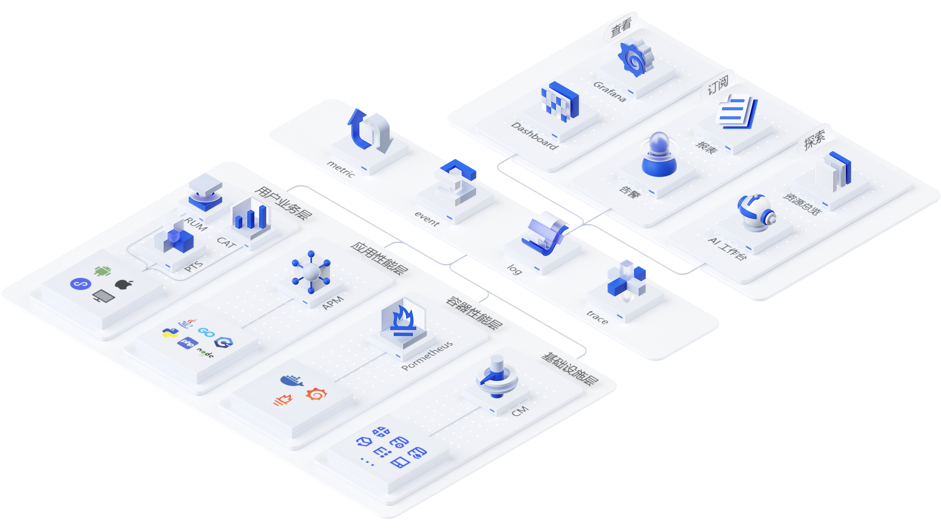 Prometheus 监控服务 | 与容器服务高度集成,高可用、全托管、免搭建的高效运维平台,兼容开源生态丰富多样的应用组件,减少开发和运维成本。 | 容器服务监控 云服务器监控 自定义监控 |