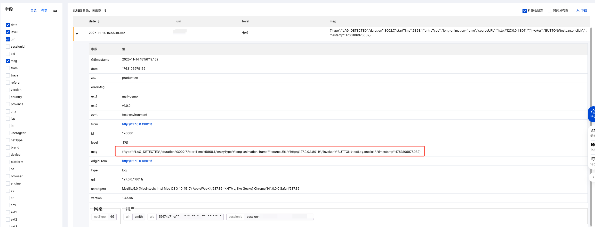 卡顿事件中的 sourceURL 和 invoker 字段可能显示为 unknown,这是由于浏览器 API 的限制,非 SDK 问题。