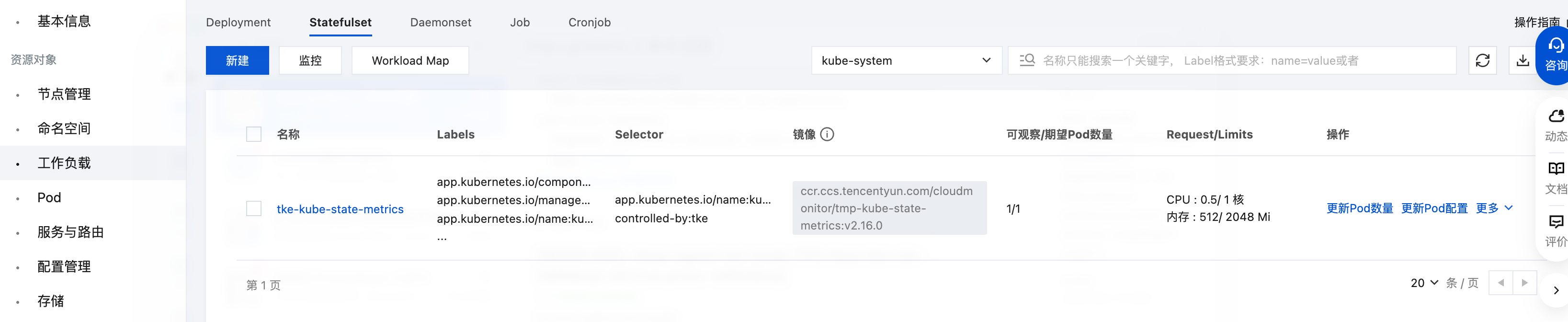 云监控 Prometheus 服务绑定 TKE 集群会把 tke-kube-state-metrics 作为 Statefulset 部署在 kube-system 下。