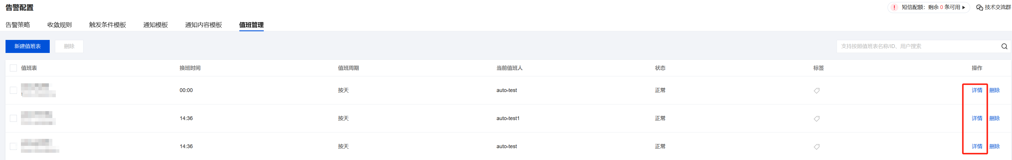 告警管理 > 告警配置 > 值班管理