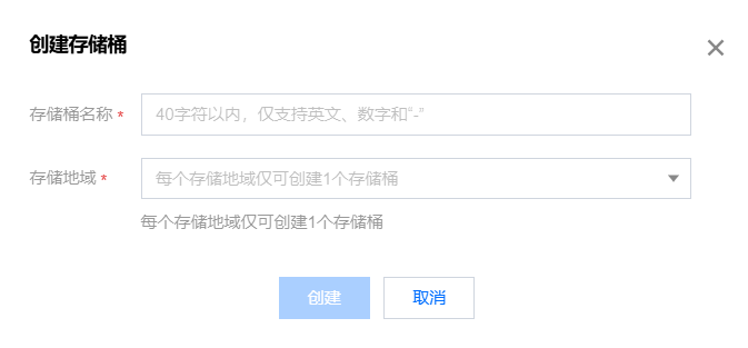 4. 在创建存储桶弹窗中,输入存储桶名称及地域信息,单击保存即可完成新建存储桶。