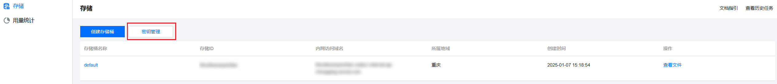 3. 选择左侧导航栏的存储,单击密钥管理。