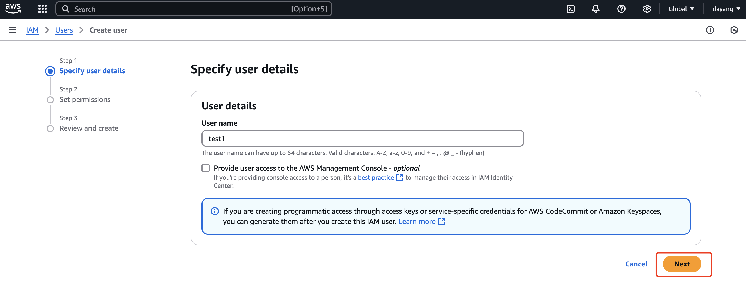 步骤一:创建 AWS IAM 账号并授予相关权限