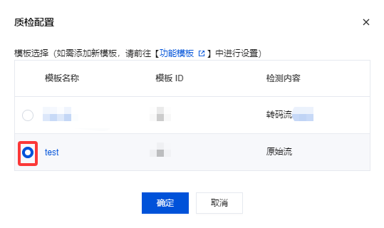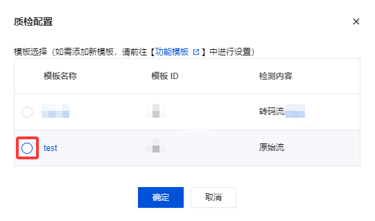 3. 选择质检配置模板,单击确定即可。