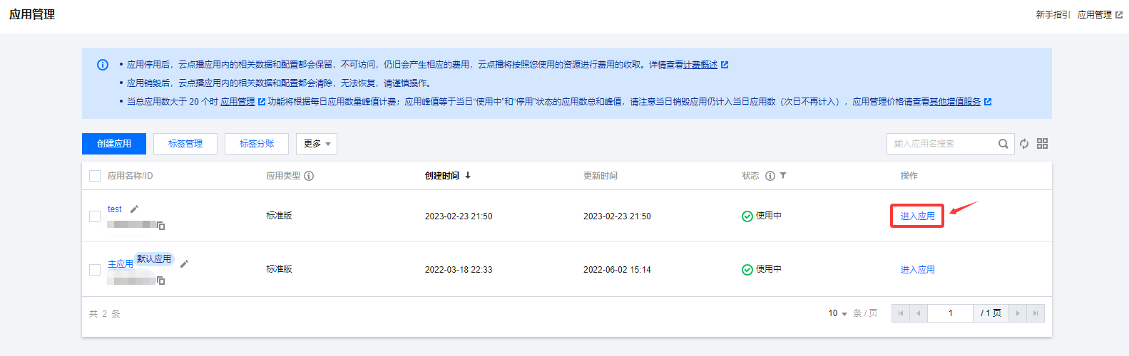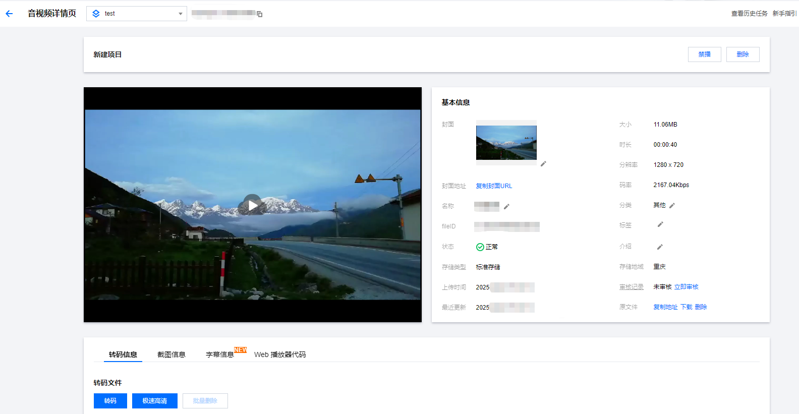 3. 选择应用管理 > 进入应用,默认进入音视频管理页面,单击操作列中的管理,进入对应文件详情页。