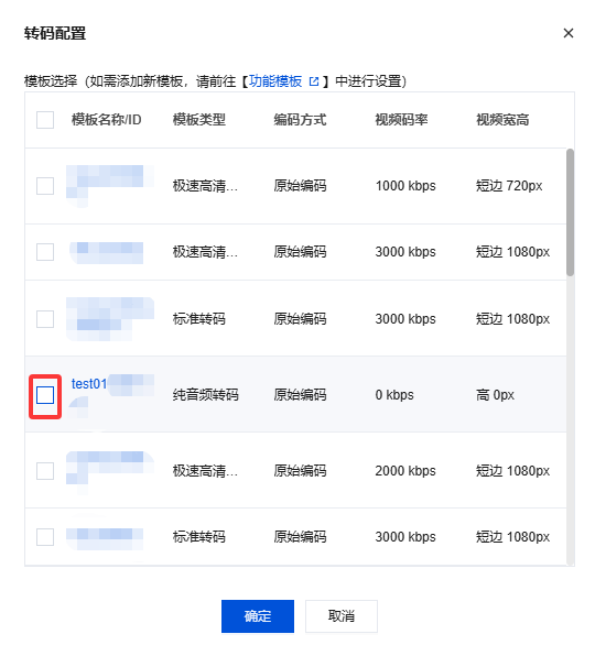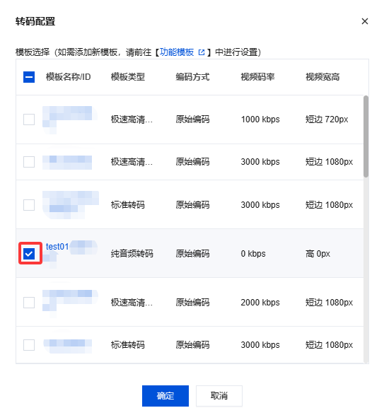 3. 根据您的实际业务需求,选择相应的转码配置模板。