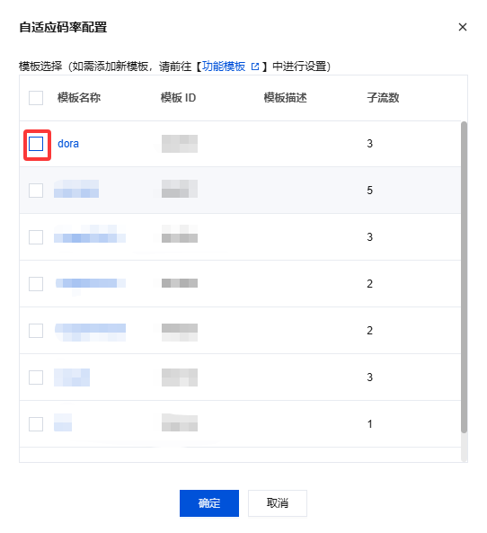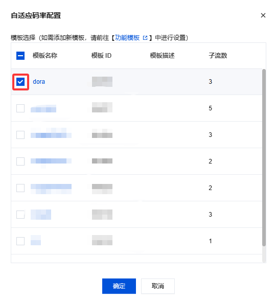 3. 根据您的实际业务需求,选择相应的自适应码率配置模板。