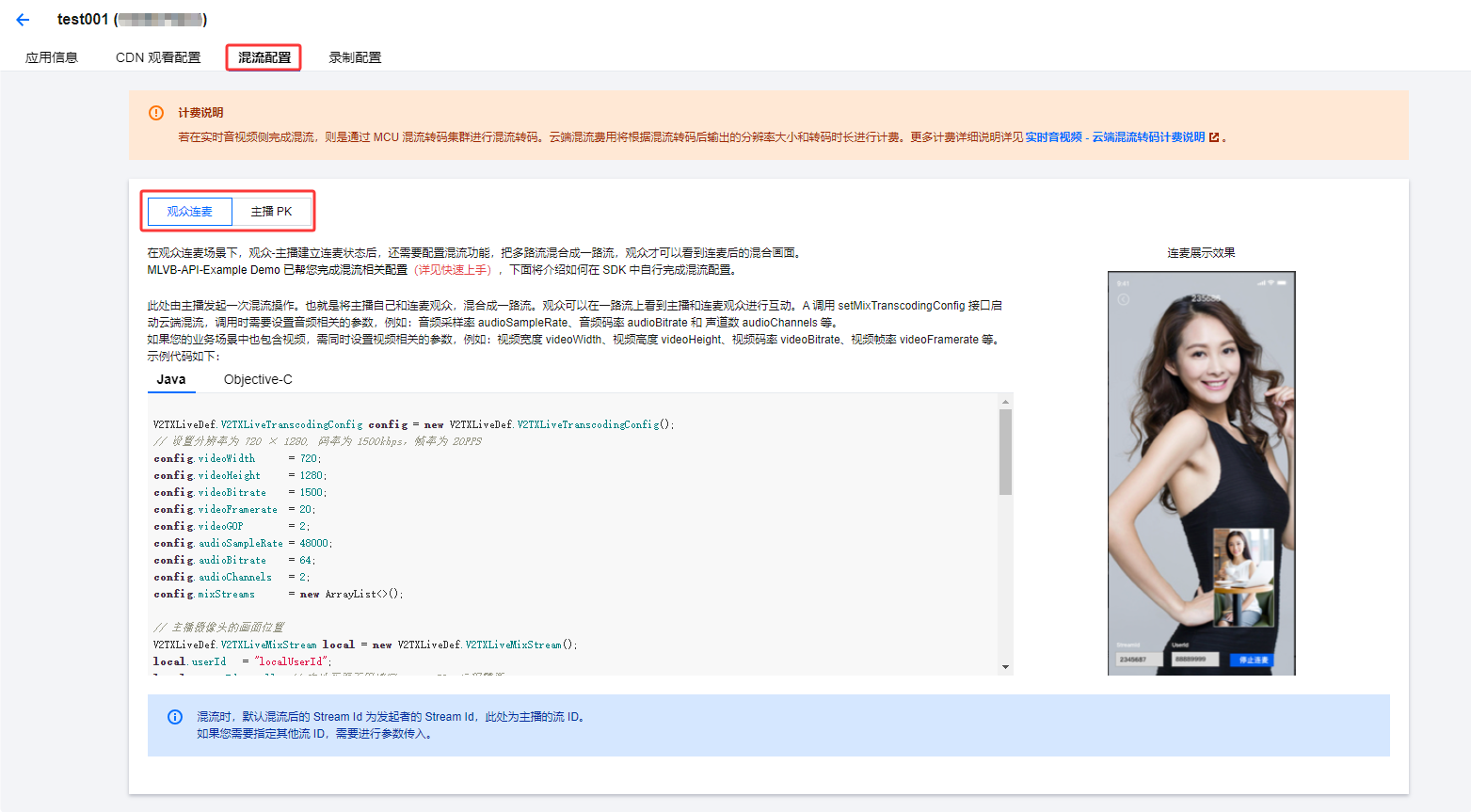 在本页面通过对混流的原理讲解以及配套示例代码,您可详细了解新版连麦方案中,针对观众连麦和主播 PK 两个典型互动直播场景,是如何实现混流。