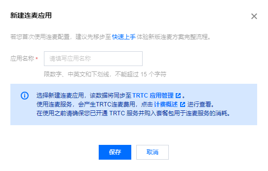3. 填写应用名称,即可新建1个 TRTC 应用。