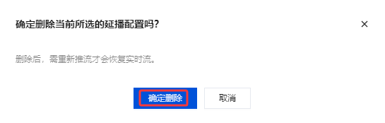 3. 确认是否删除当前延播配置,单击确定删除即可成功删除。