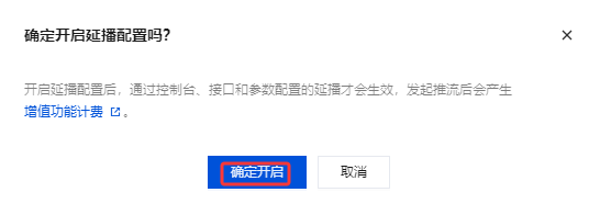 2.1 确认是否开启当前延播配置,单击确定开启即可成功开启。