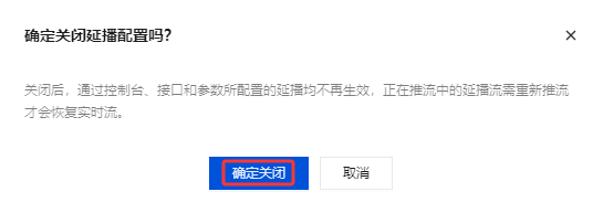 3. 确认是否关闭当前延播配置,单击确定关闭即可成功关闭。
