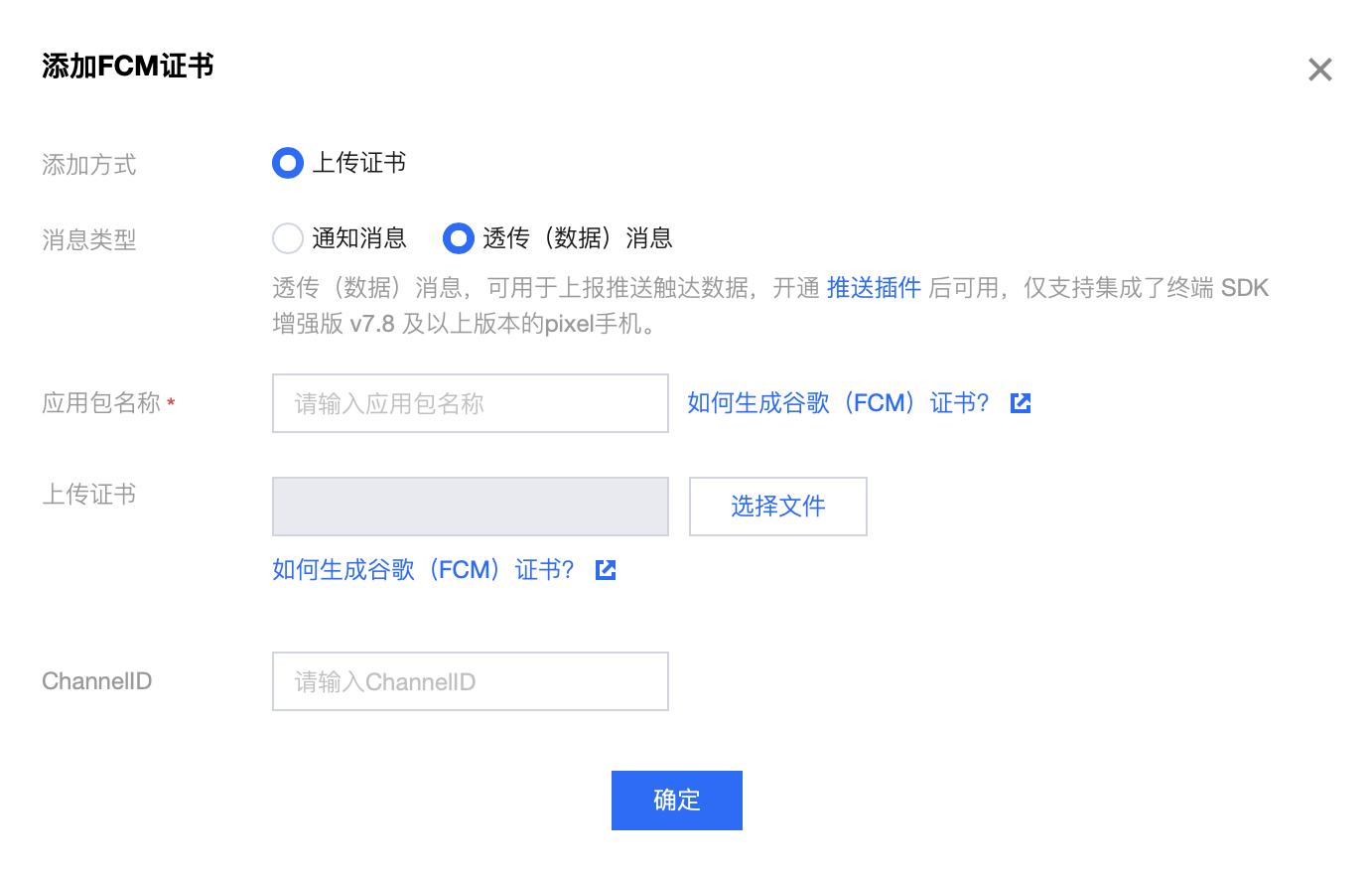 FCM 数据消息能力仅支持 TIMPush 7.8 及以上版本的 pixel 手机,其他厂商设备需自测支持情况。