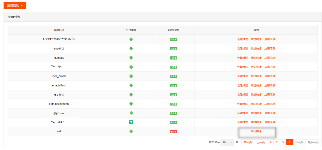 3. 完成应用创建后,就可以启用该应用的推送服务了。