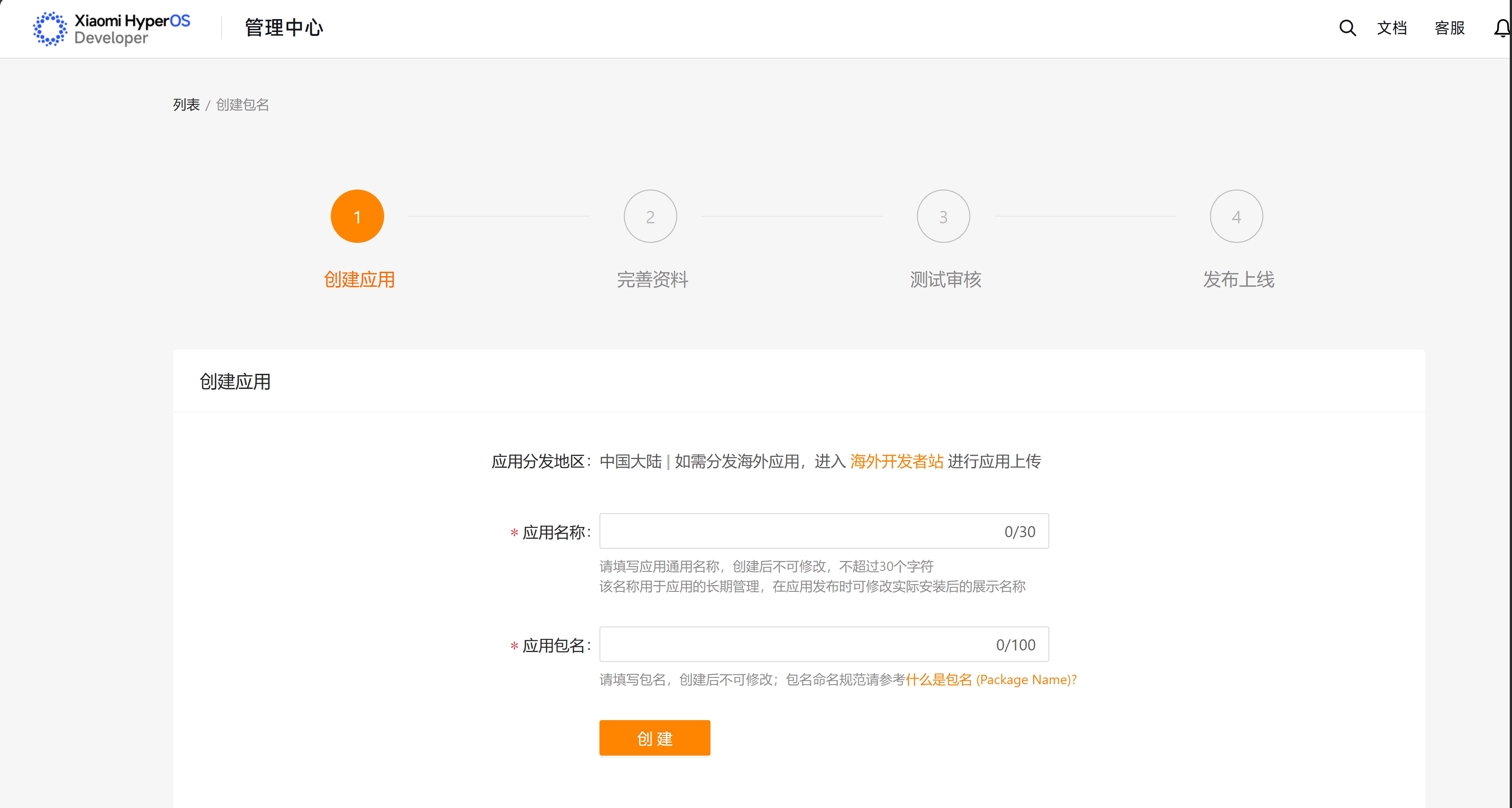 1. 进入 小米开放平台,注册小米开发者账号,详情请参见 企业开发者账号注册流程。