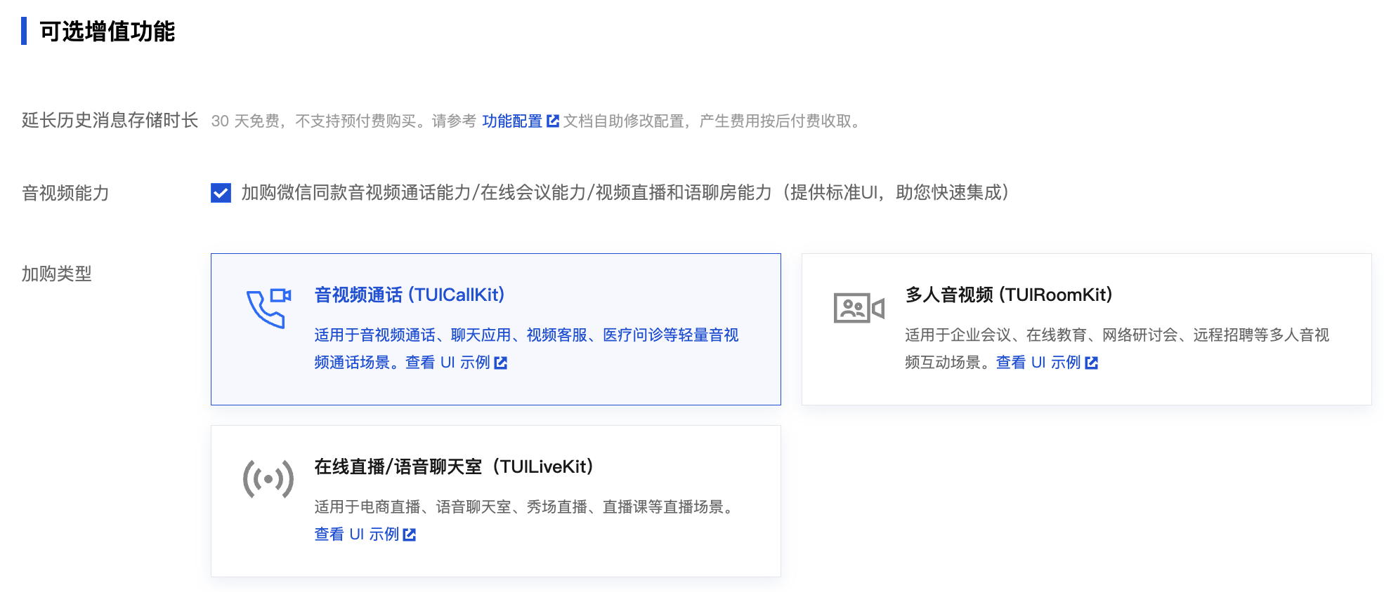 3. 如果需要购买增值服务功能包请在可选增值功能中一并选择,否则可直接跳到下一步。