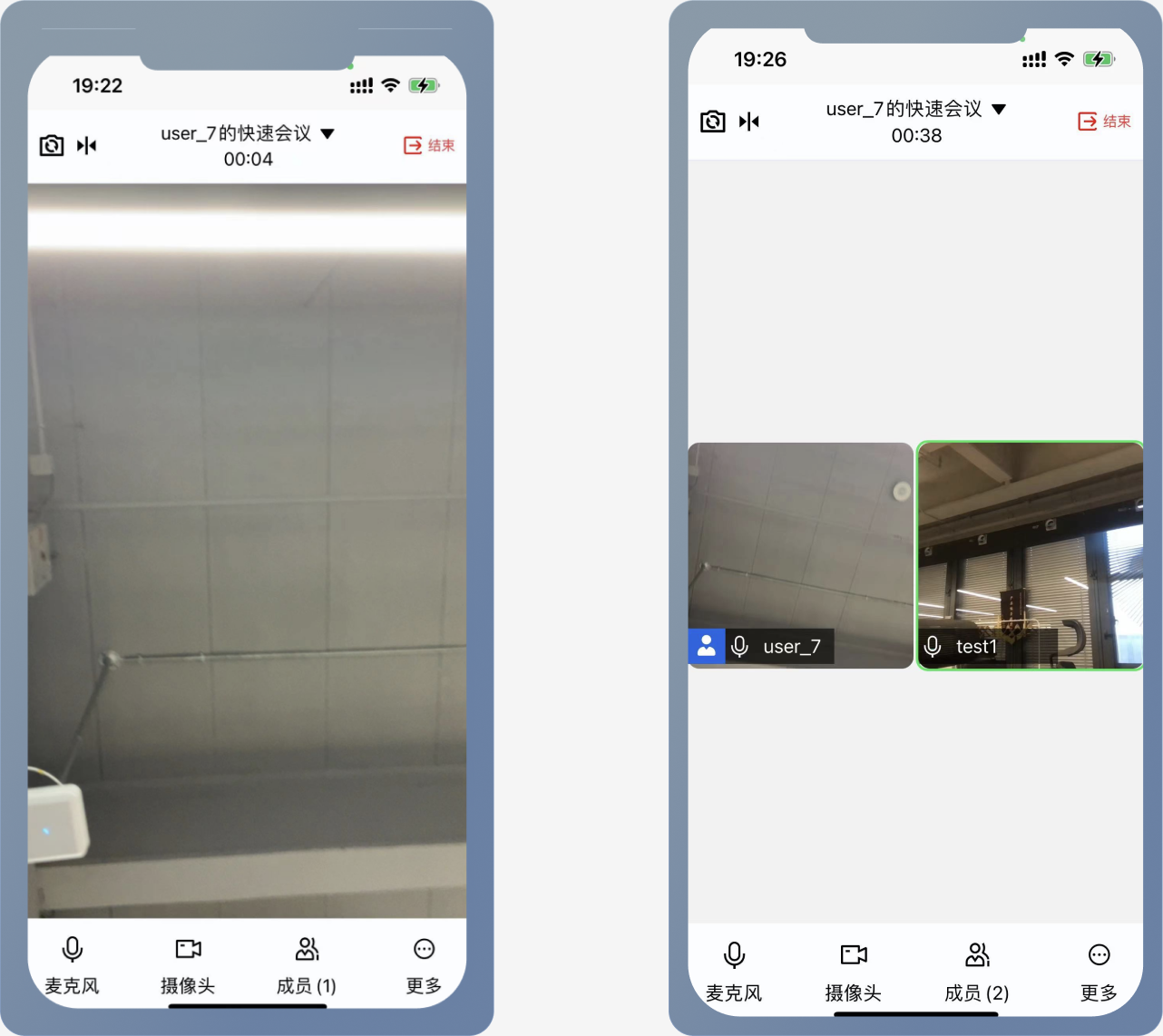 3. 主持人端创建会议以及普通成员加入会议界面。