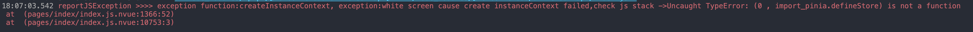 1. 若安卓平台,跑通出现 “ reportJSException >>>> exception function:createInstanceContext, exception:white screen cause create instanceContext failed,check js stack ->Uncaught TypeError: (0,import pinia.defineStore) is not a function ” 错误,如何解决?