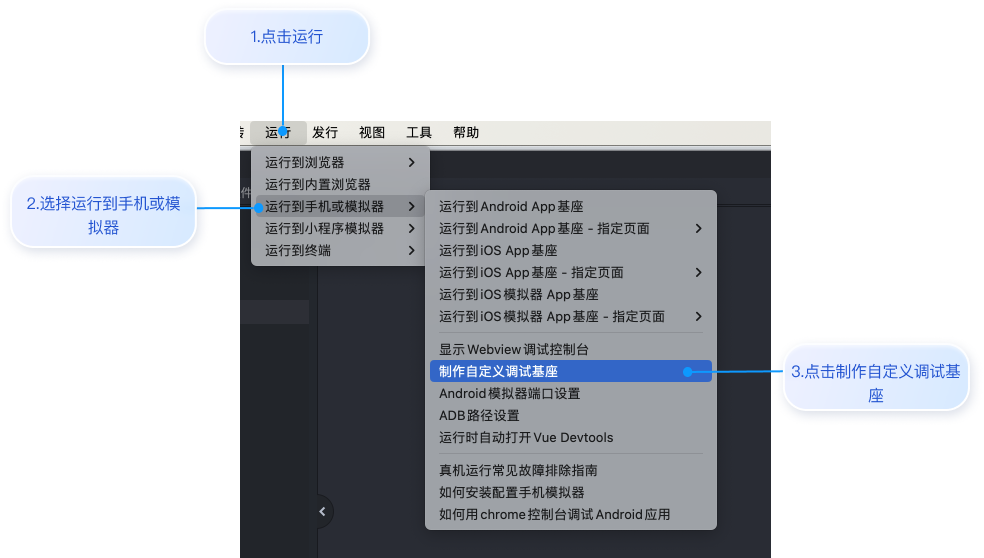 2. 自定义调试基座成功后,使用自定义基座运行项目。